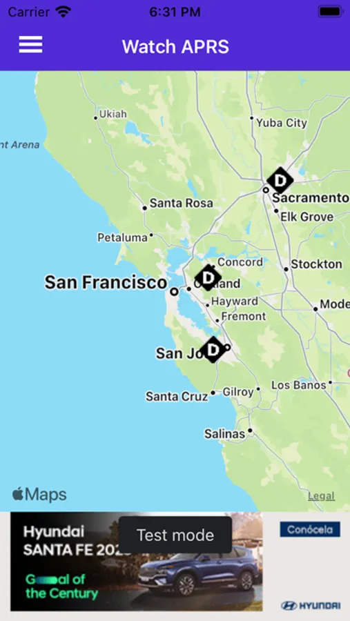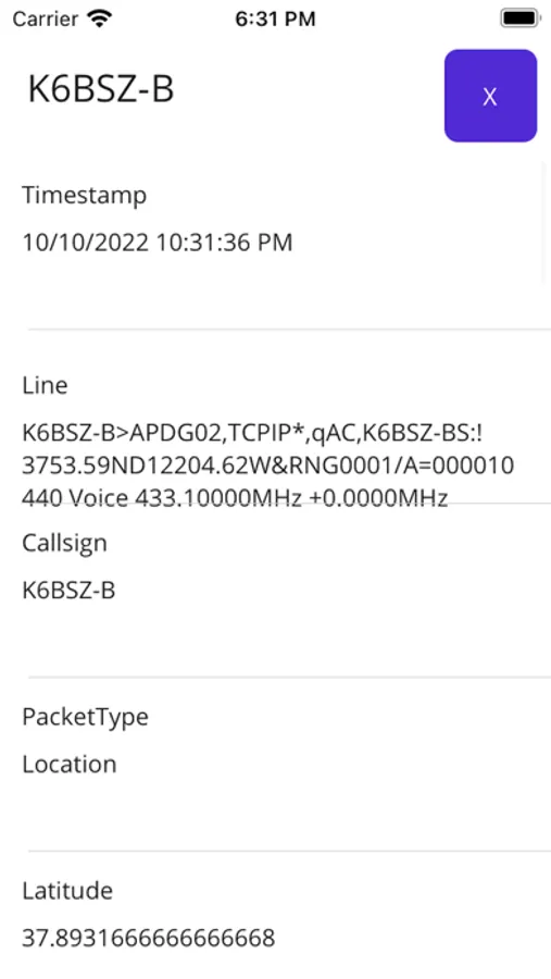 * Interactive mapping of APRS packets using your device's included Apple Maps feature