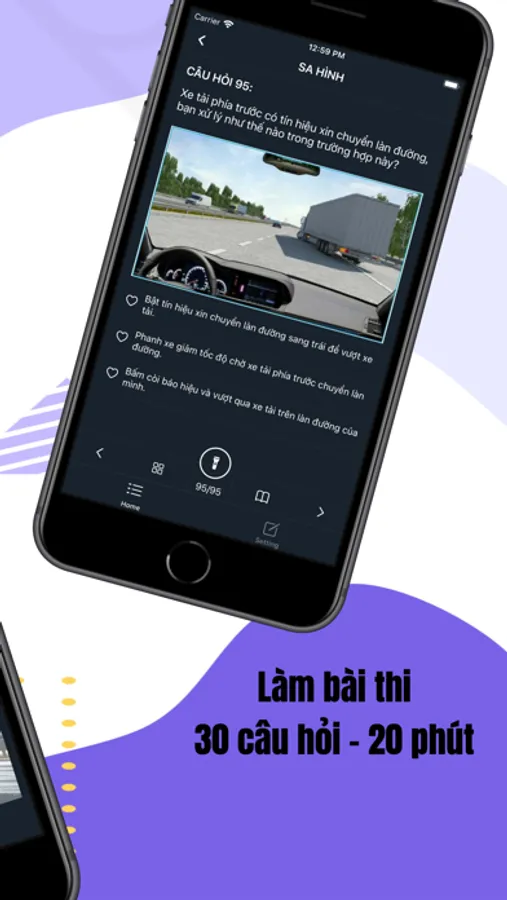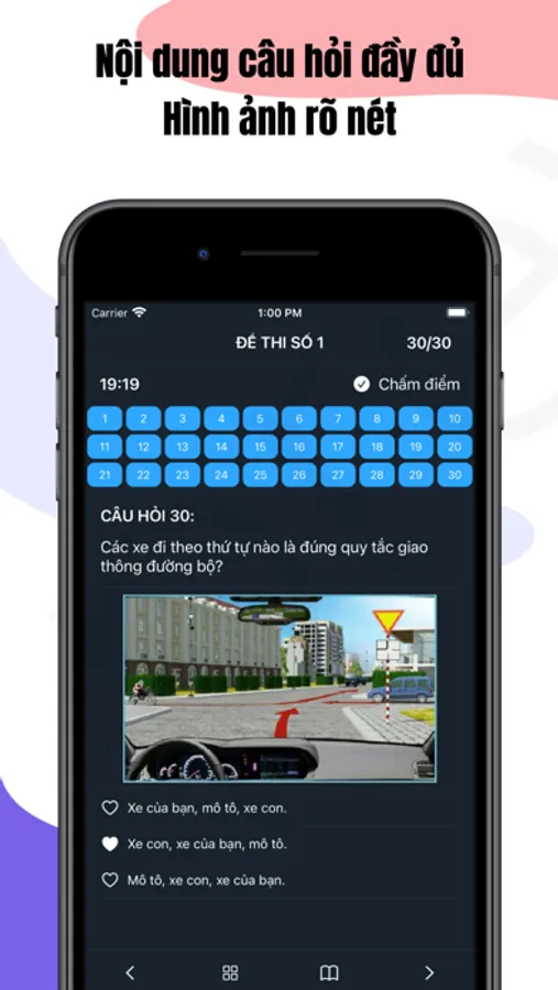 - Ôn luyện và thi thử trực tiếp trên ứng dụng sau khi các bạn đã học lý thuyết.