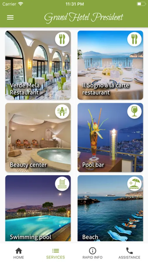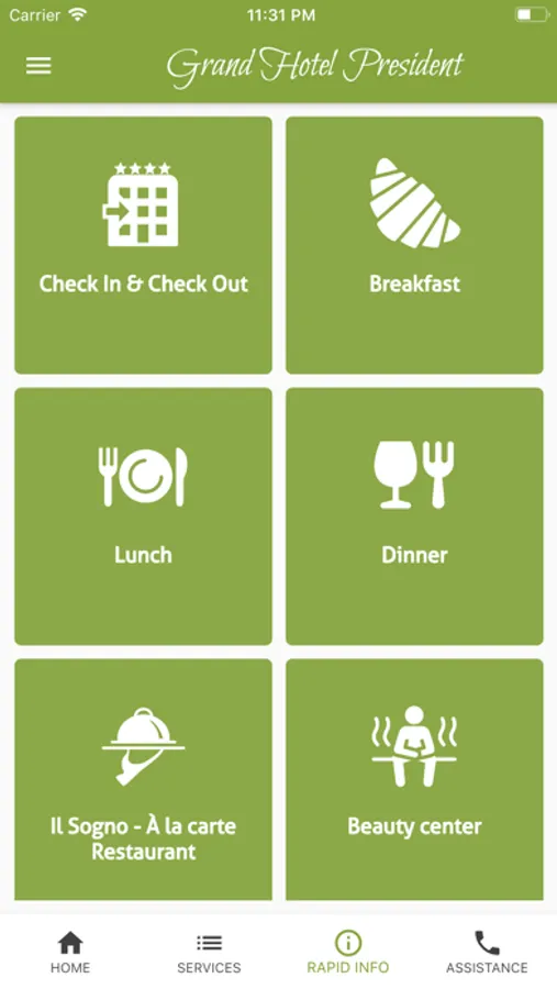 The Grand Hotel President's app offers a range of services for those staying at the hotel and also for those wishing to book a holiday at our facility.