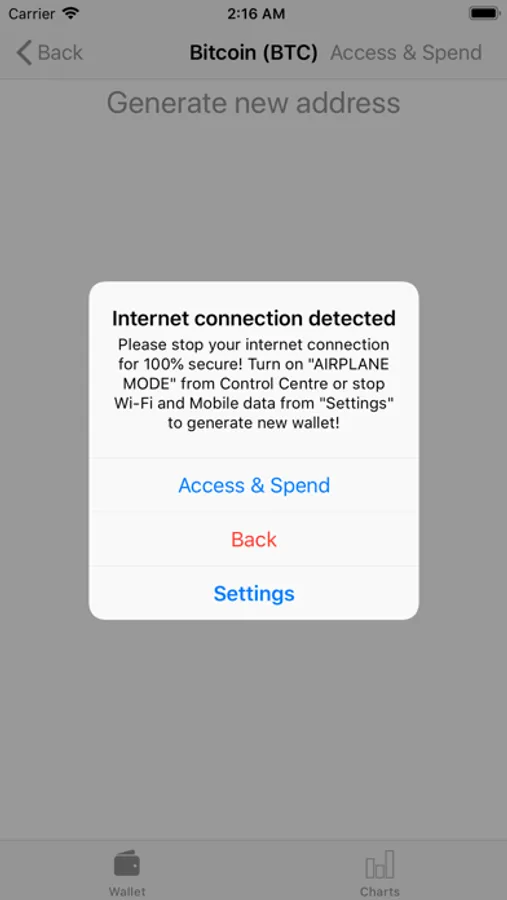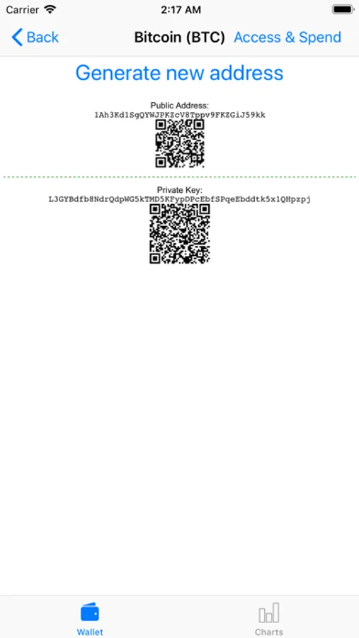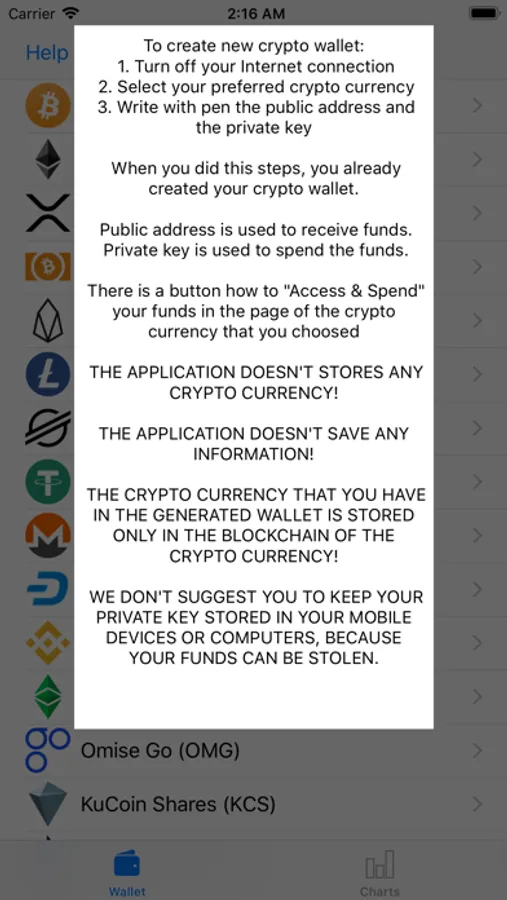 The application generates random address and private key of the crypto currency by your choice completely offline, which means that is the best option to store your assets.