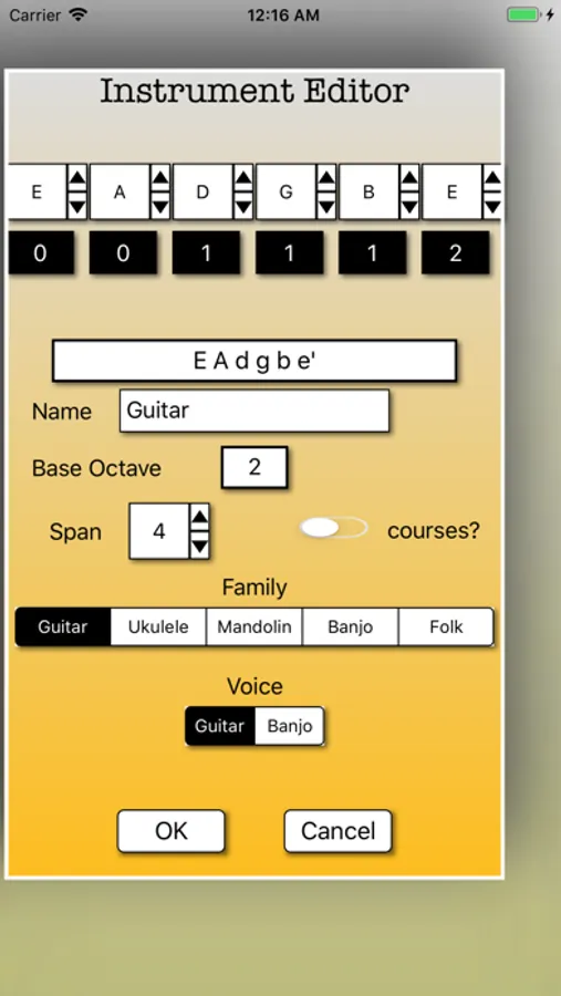 Chord Calculus Lite is a limited version of Chord Calculus, a tool for players of fretted instruments. ChordCalculus will allow the user to choose from a large number of pre-defined fretted instruments in a variety of tunings. Additionally, the user can define new instruments and/or tunings. Single or multiple capos can be added.
