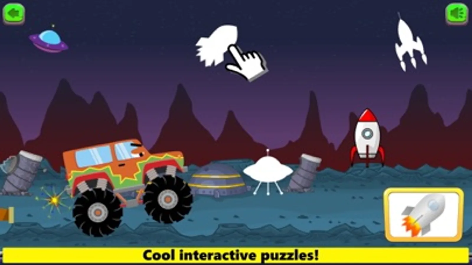 Adding even more fun to the Monster Truck Games Racing app is the puzzle games! Using the same themes as the driving worlds the puzzles delve them further into those worlds by adding different elements that belong to that theme and letting them play with them. With three games for each theme they will get to see loads of dinosaurs, spaceships, police puppies, and of course candy! It's a unique way to have fun with each world and will help their creativity abound.