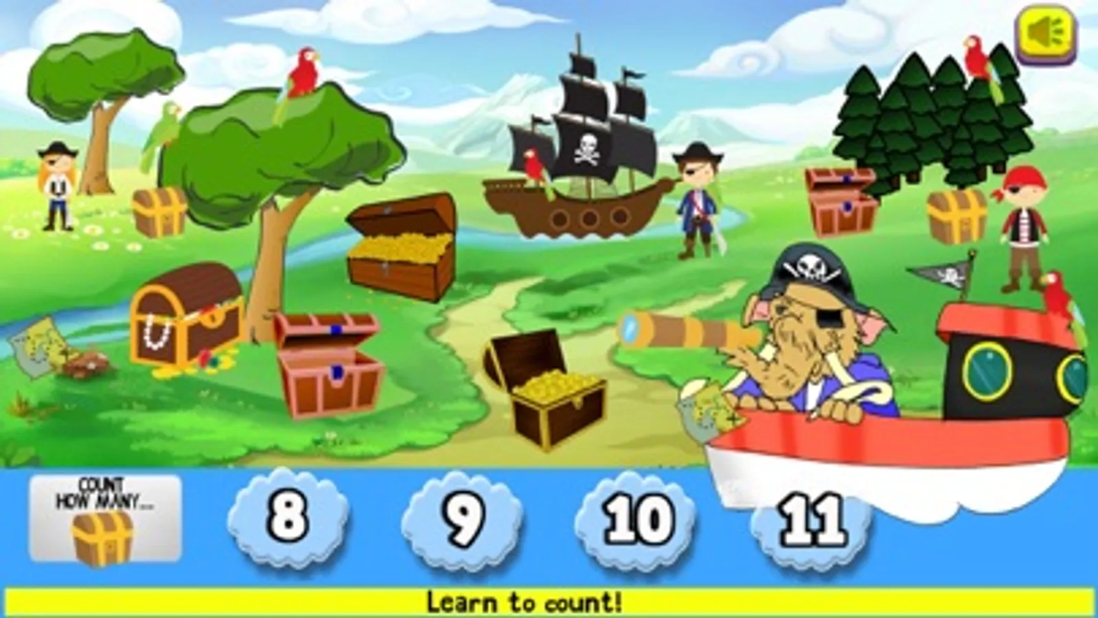 Again using and adding to the endearing illustrations from the storybook this game will help your little ones learn to count. They will get shown a picture of what they have to count on the page and when they pick the right number they win and go to the next game. It’s rewarding and a fun way to learn through play!