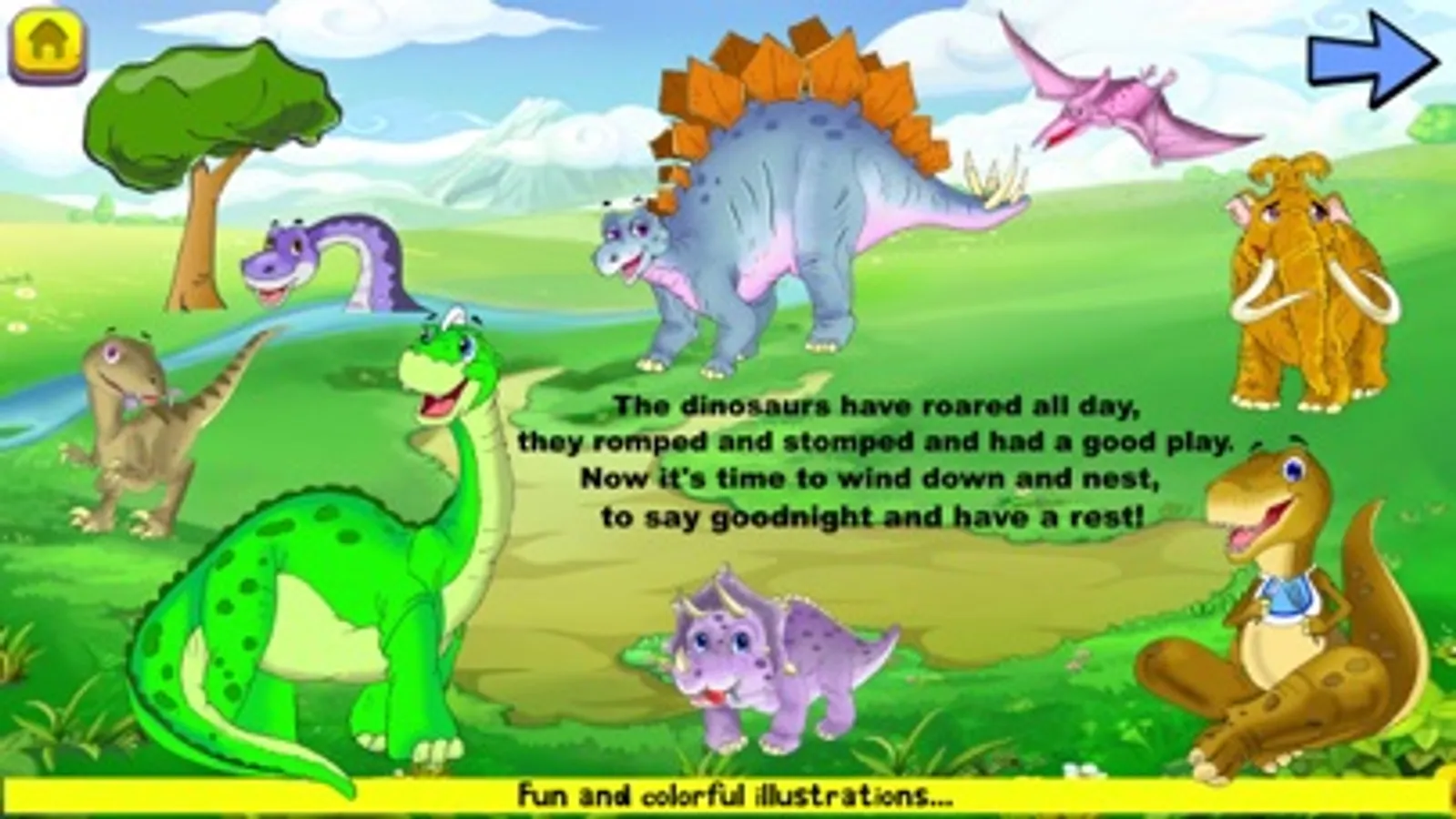 Little fingers love to tap, tap, tap, so these sounds will delight and engage all dinosaur fans. With a Tap Sound for every dinosaur in the storybook your little ones will get to hear tons of different sounds of the dinosaurs when they are dreaming. When they tap something new will appear on the screen and after 6 taps they will get to hear a sound of everything that appeared! It’s super engrossing and entertaining as well as enriching for their imaginations.