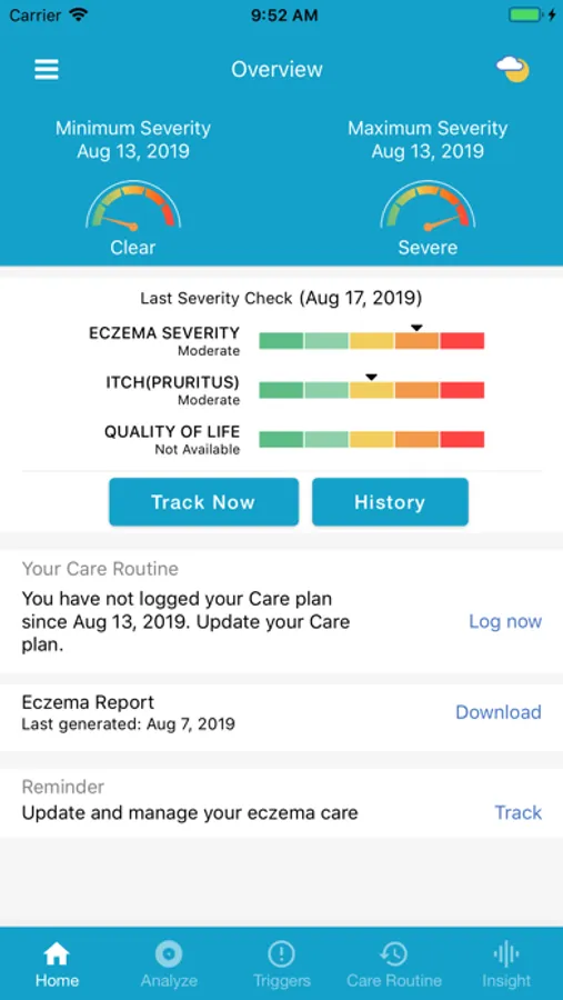 Generate Summary report about how your Eczema has been doing, you can decide to share this with your Dermatologist or Physician.