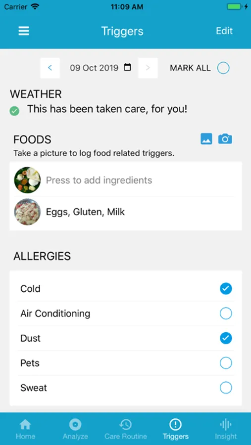 • Create your own custom trigger which you think might be causing a flare up in Eczema and start tracking.