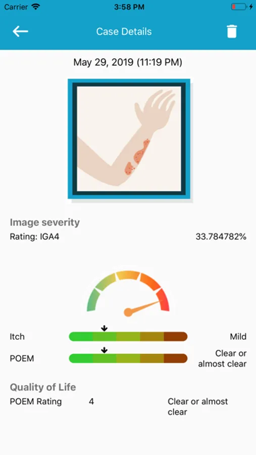 Our AI technology instantly analyzes your skin image and gives you a suggested severity rating for your Eczema. If you develop a skin rash due to Eczema flare use our tool to keep track of the pictures and create and track the care plan you use.
