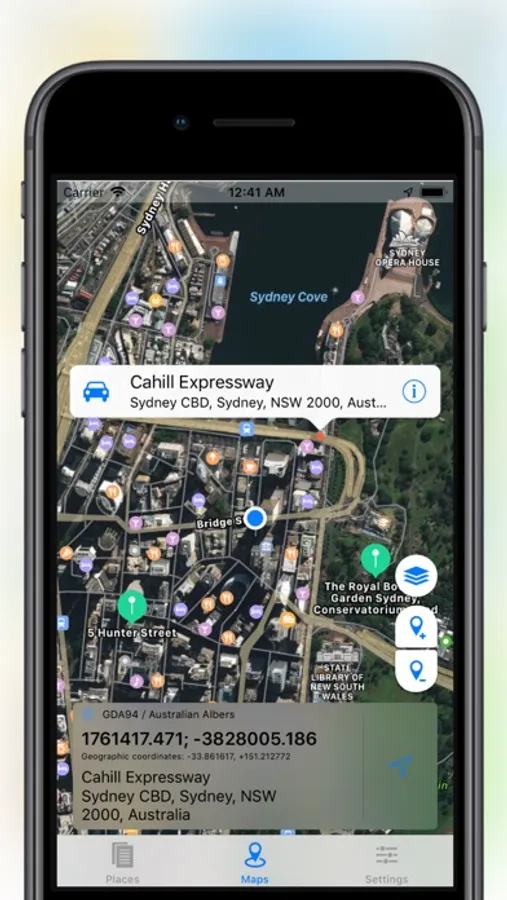 When you tap another annotation on Maps, brief information of this annotation after converting latitude and longitude by proj4 is shown below.