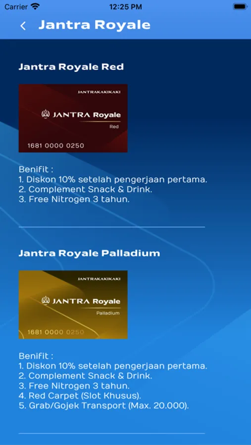 Jantra Royale adalah aplikasi untuk pelanggan dan penggemar Jantrakakikaki Aplikasi ini menyediakan cara mudah untuk menghubungi bengkel, membuat reservasi online, mendapatkan kupon, kartu anggota / loyalitas, dan inisiatif promosi lainnya dari Jantrakakikaki. Jantrakakikaki, bagian dari Janta Group, adalah spesialis bengkel profesional untuk sistem suspensi mobil. Rekondisi suspensi seperti Tie-rod, Long Tie-rod, Link-Stabil, Shock Absorbers, EPS (Electric Power Steering). Jantrakakikaki juga menyediakan Speed Balancing dan layanan spooring.