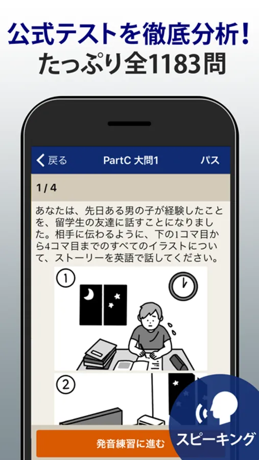 GTEC Advancedのリーディング、リスニング、ライティング、スピーキングに対応。