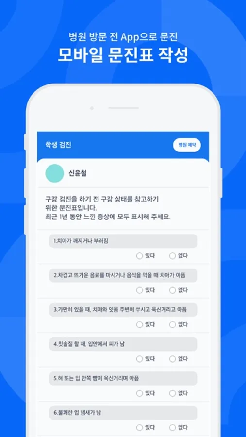 치과 예약은 로그인 후 우측 하단에 병원 안내에 들어가시어 검진 가능한 병원 목록 확인 부탁드립니다.