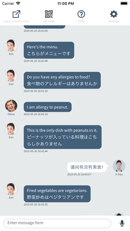 Users with SmaLingual application can also scan the QR code from the application and join the chat room.