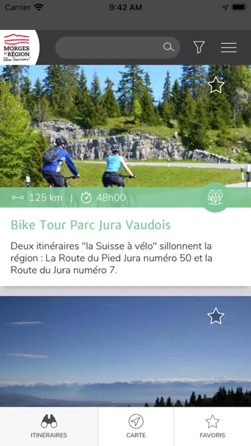 Grâce à un système de filtres avancés, vous pouvez affiner la sélection de balades et ainsi choisir parmi un échantillon d’itinéraires restreint qui correspond exactement à ce que vous souhaitez faire. Si vous désirez être inspiré, laissez l’application vous faire des recommandations en fonction de votre position et des balades disponibles à proximité.