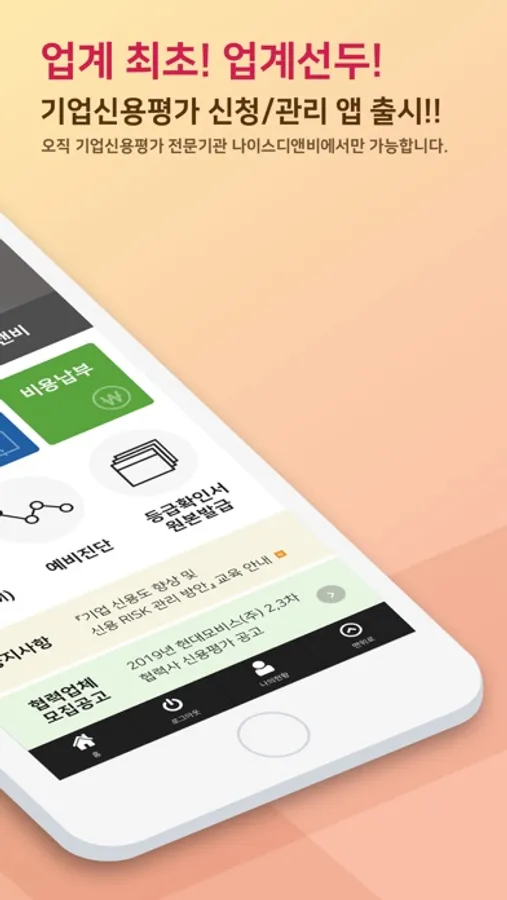 업계 최초! 업계선두! 기업신용평가 신청/관리 앱 출시!!