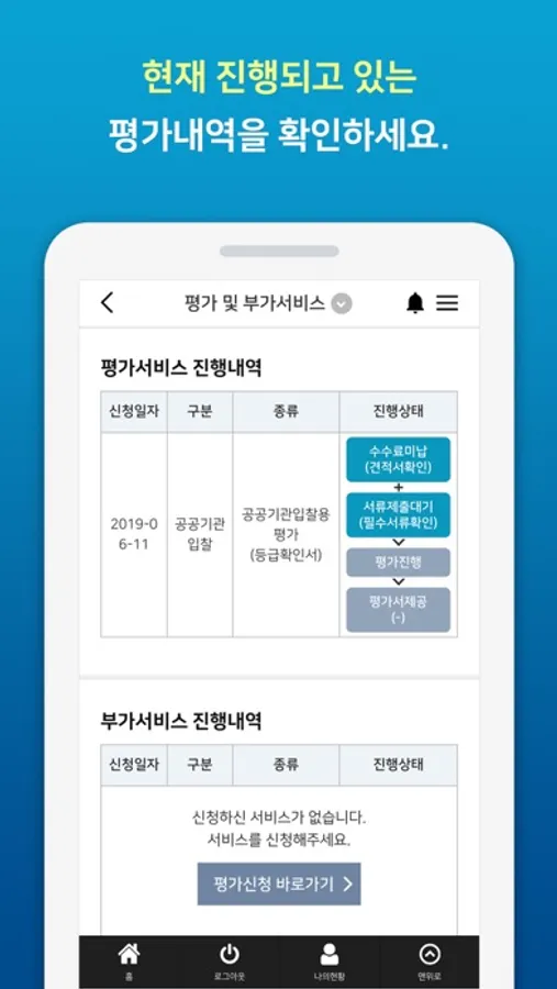 5. 평가진행 확인(접수상태 및 완료예정일 체크)