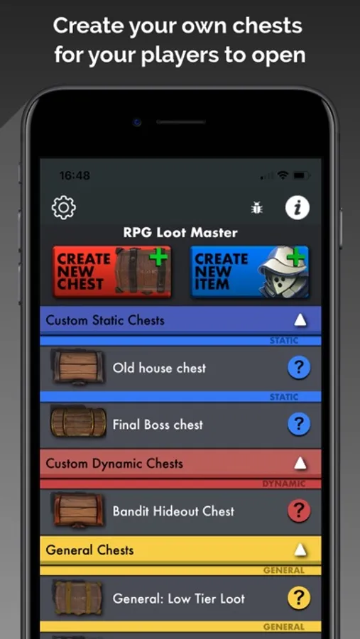 RPG Loot Master is a tool for DM/GMs to create visual loot generation for DnD. Loot can be randomly chosen or the DM/GM can select what items to reward players. DMs/GMs can select the contents of the chest, what it looks like and even the location of the chest.