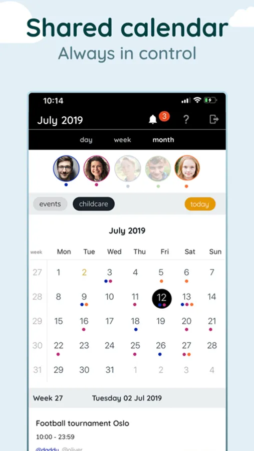There is also a separate app for children. Here the child gets a simple calendar with a good overview. The child does not see all communication between the parents, nor do they need to see, for example, budgets and receipts that document purchases on behalf of the children.