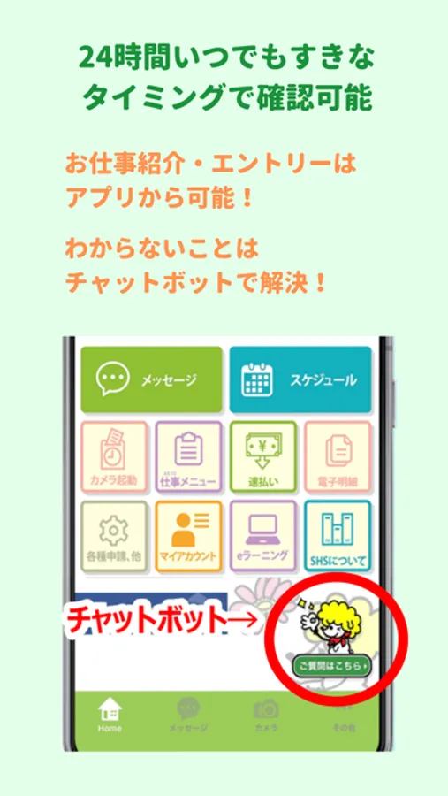 派遣登録後の疑問はチャットボットで24時間回答対応しているから安心・便利
