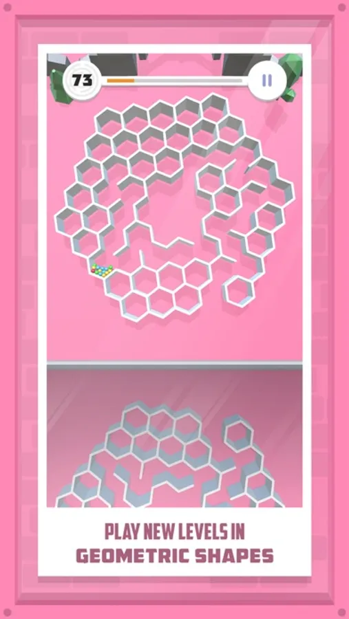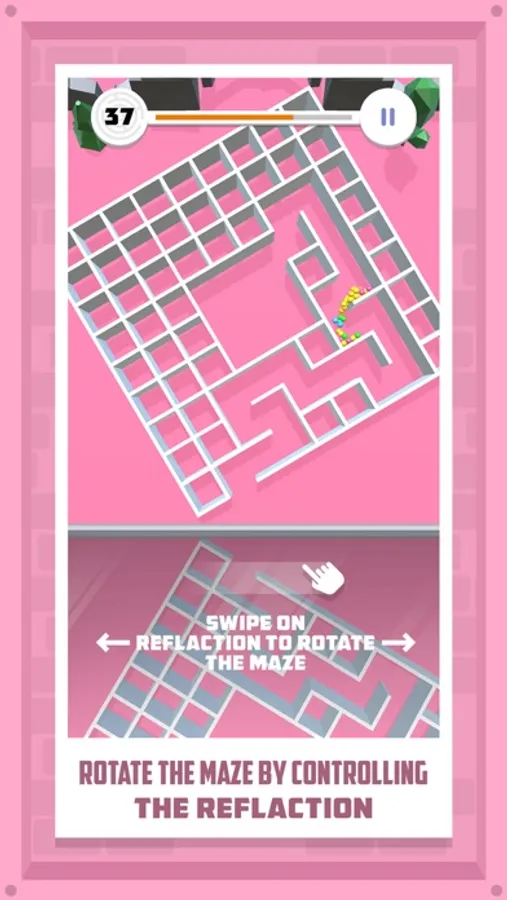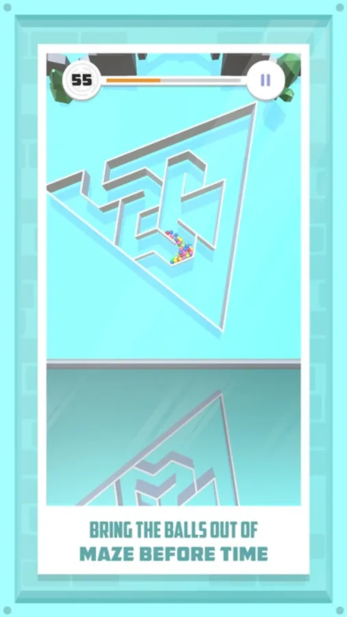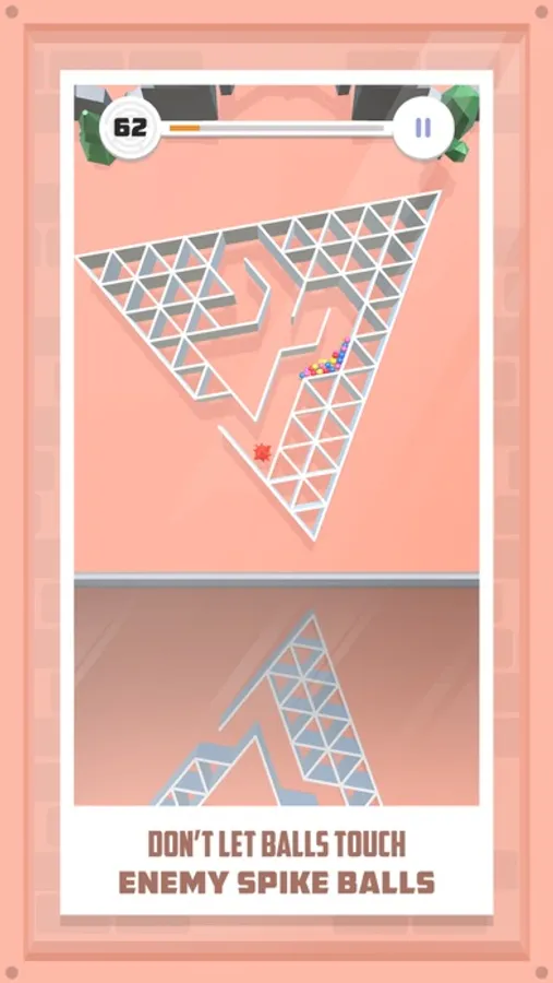 Rotate the maze by controlling it's reflection in mirror at bottom of screen (drag left or right). and bring all the balls out of the maze before time runs out, but don't touch (enemies) spike balls. One-Touch simple controls and very addictive gameplay with lite mood.