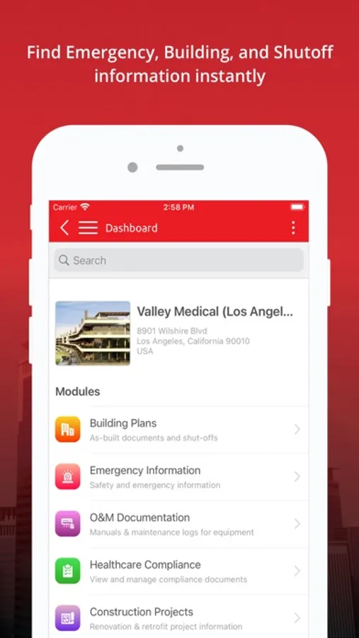 The ARC Facilities app provides instant access to your critical facilities information right from your mobile device. Technicians can quickly access As-Builts, shutoffs, equipment locations, maintenance records, O&Ms, safety information, and other important documents with just a few taps. Mobile access from the field enables technicians to respond immediately to any situation and saves hours of lost productivity looking for information.