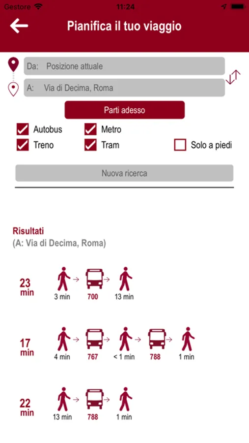 L'app Roma Mobilità fornisce informazioni sui tempi di attesa dei bus, tram e filobus alla fermate. Inoltre consente di calcolare il percorso per muoversi in città.