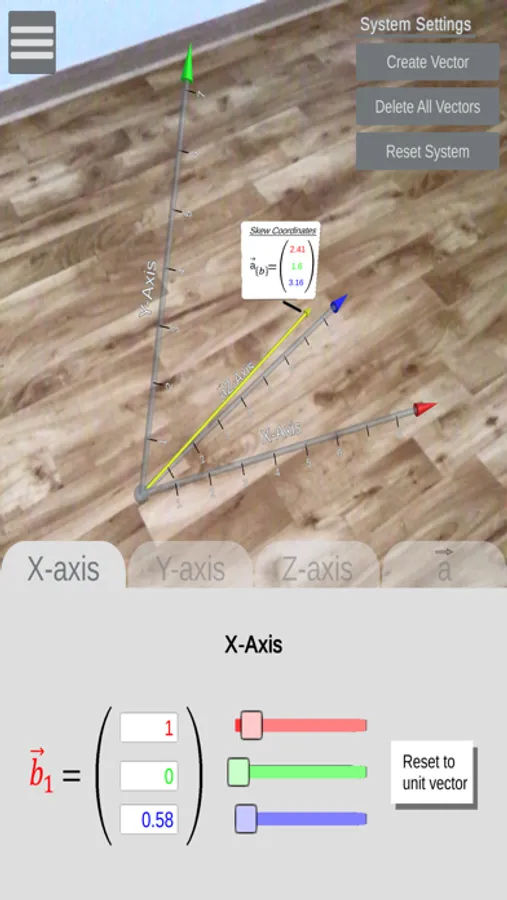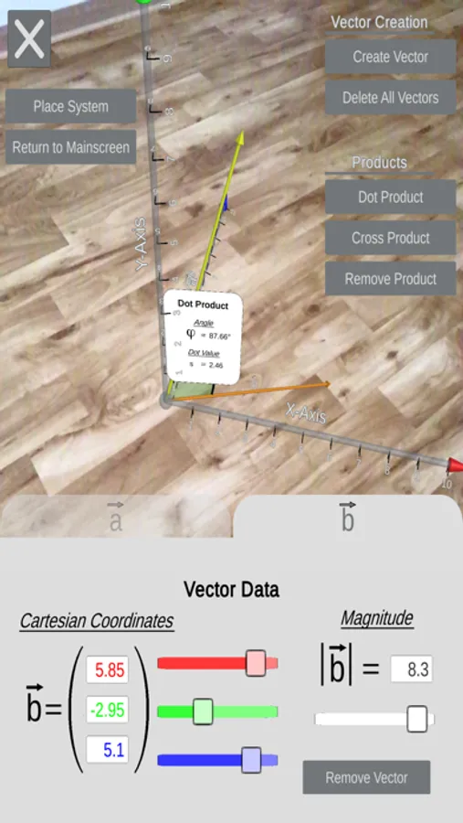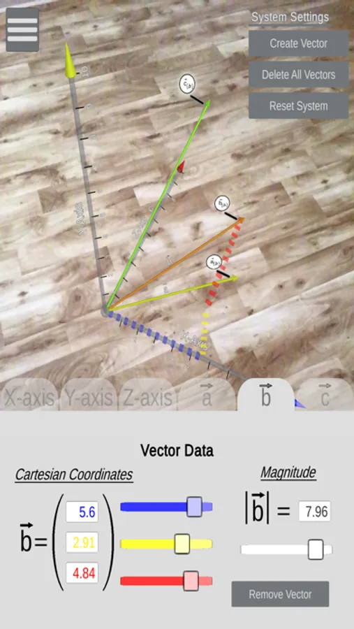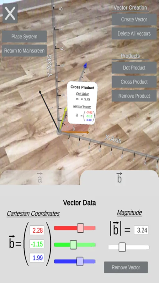 Display and manipulate vectors and surfaces in 3D space using augmented reality.