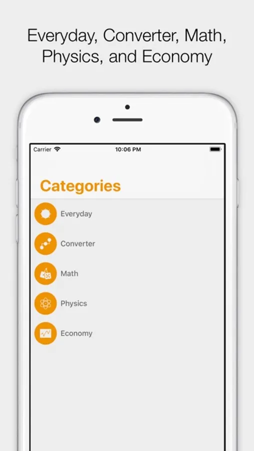 • Five categories - Everyday, Converter, Math, Physics, and Economy