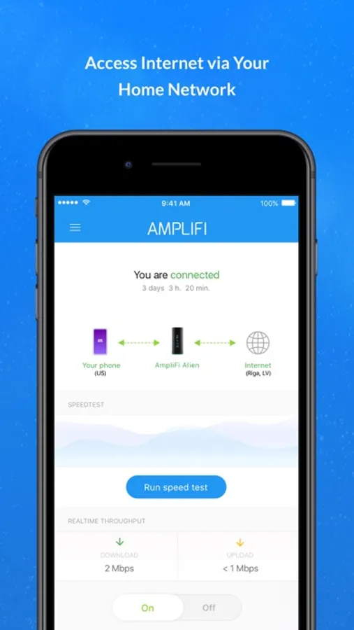 The AmpliFi Teleport app allows you to bring the digital comforts of home with you, no matter how far away you are—all without a monthly fee. This app allows you to:
