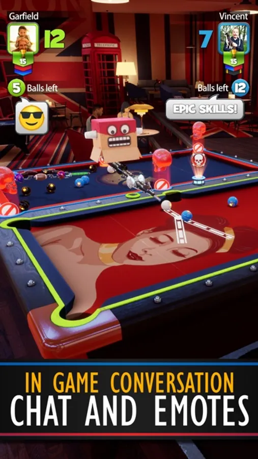 Banter with your opponents using chat and emojis at the end of each pool game