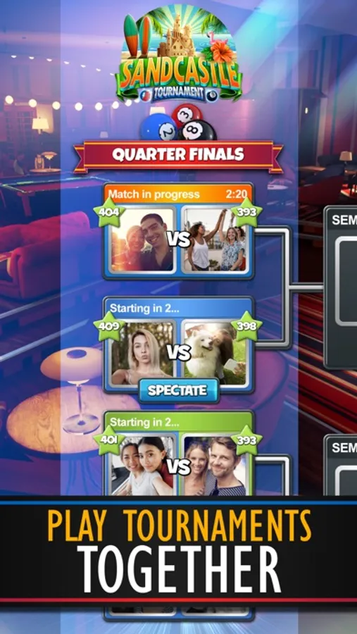 Choose up to 7 Facebook friends to play in Pool Blitz Tournaments. Heckle your friends as you spectate each other's matches live!