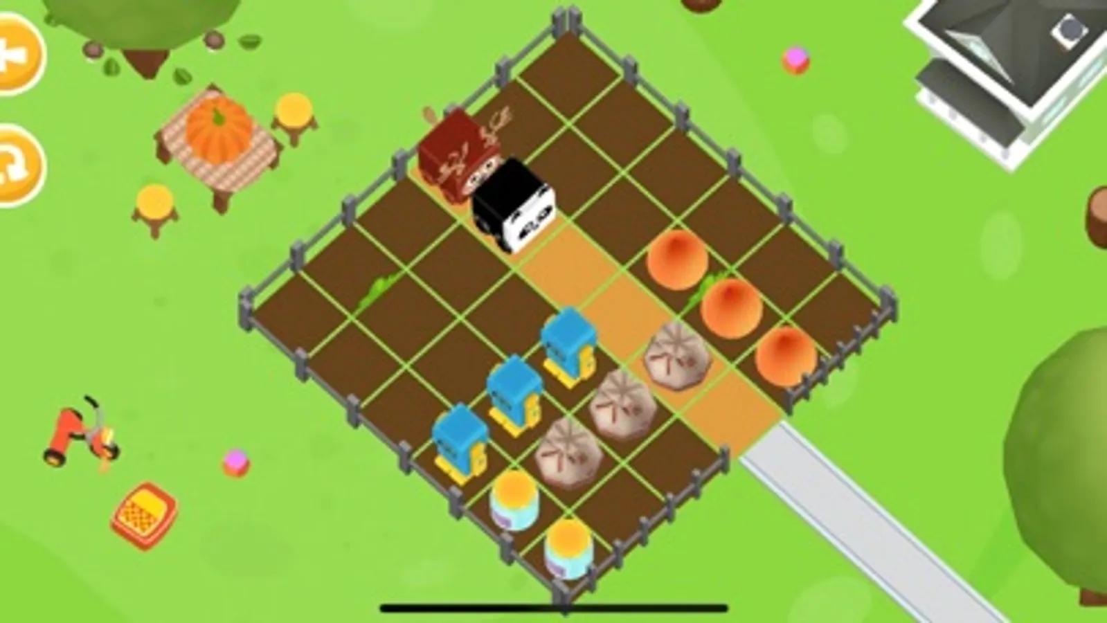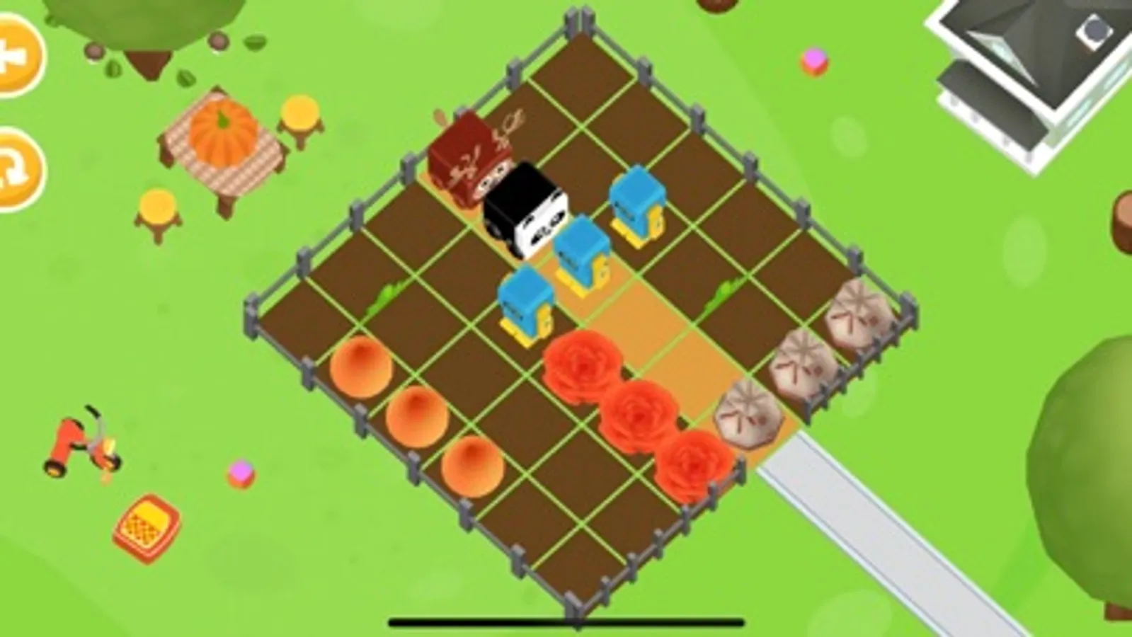 On the way are heroes, various obstacles and the task of the kids is to help them get out. The way to the exit is highlighted and the child by exercising logic, attention, and intuition must move the obstacles in such a way, as to free the luminous strip from unnecessary objects so Baby Panda and Baby Deer will get out from the farm to the lawn fast.