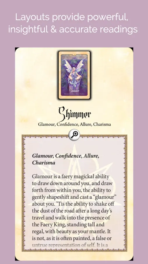 Wild Wisdom of the Faery Oracle app is the doorway into the magical realm of the Faery. Each exquisite illustration is brimming with guidance through secrets, insights and messages directly from the most helpful and wise of nature’s guardians. The Faeries deliver clear messages and direct and loving guidance through these easy to read, mystical, rich and deep illustrations. The Wild Wisdom of the Faery Oracle app includes an in-depth guidebook revealing the secret lore of the Faery realm as well as clear lessons on how to connect, create and nurture deep relationships with your own Faery guardians and allies. The included card layouts allow you to give powerful, insightful and accurate readings for yourself and others.