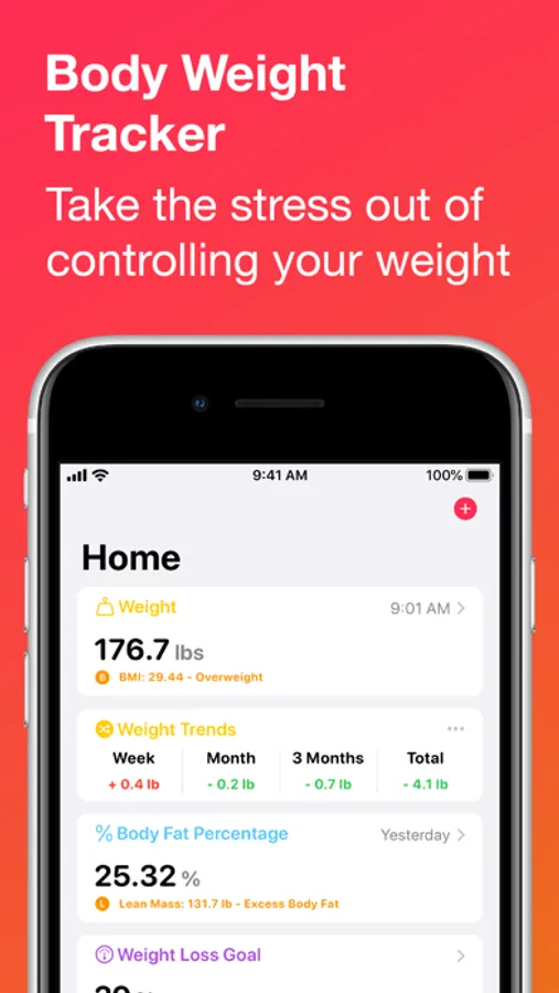 Weighed Pro is an optional purchase which includes recording & tracking body fat percentage, location-based reminders, and integration with Apple Health.