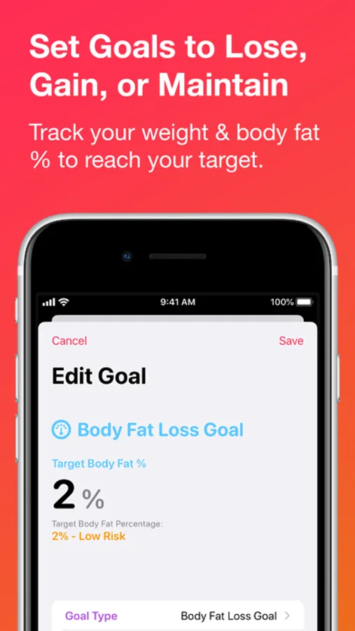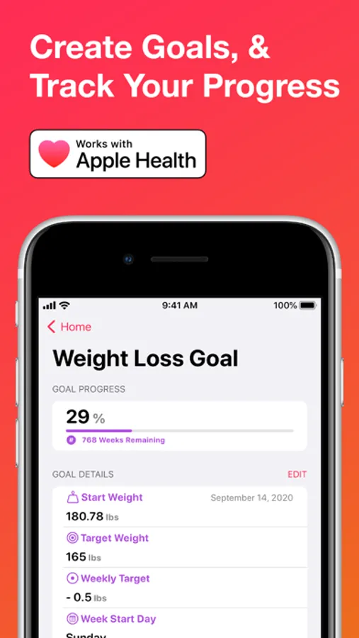 Set a goal to lose, gain, or maintain your body weight and Weighed will help you meet your target, a moving average is used to estimate the time to completion so that occasional blips don’t disrupt your progress.