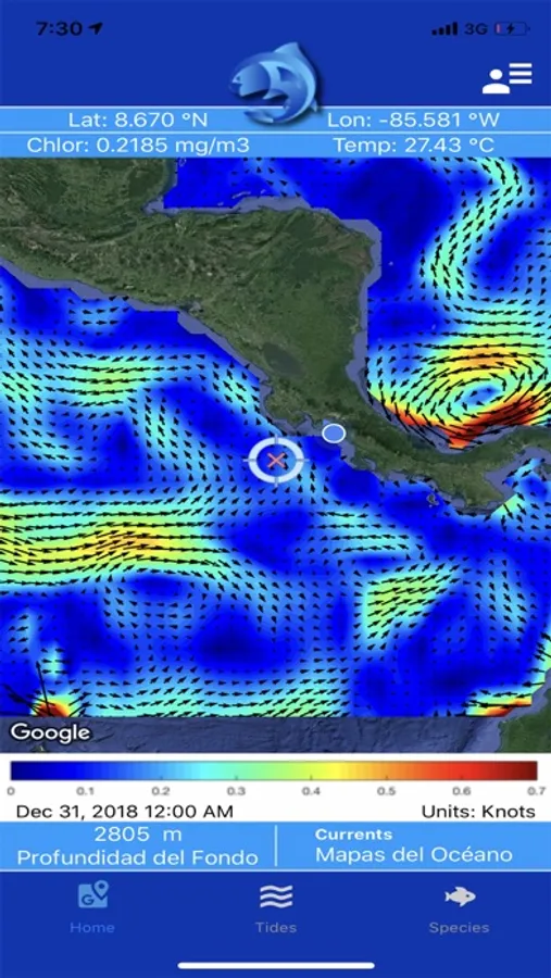 Overlay high-resolution satellite sea surface temperature and surface chlorophyll concentrations and get data for your points of interest, even while offline.