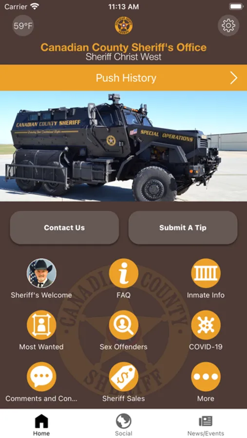 The Canadian County Sheriff’s Office mobile app is an interactive application developed to help improve communication within our communities and with Canadian County residents. The Canadian County Sheriff’s Office app allows residents to connect with the Sheriff’s Office by viewing sheriff’s sales, searching for inmates, locating sex offenders in your area, submitting tips, viewing information on SDA / Handgun Licensing, and much more.