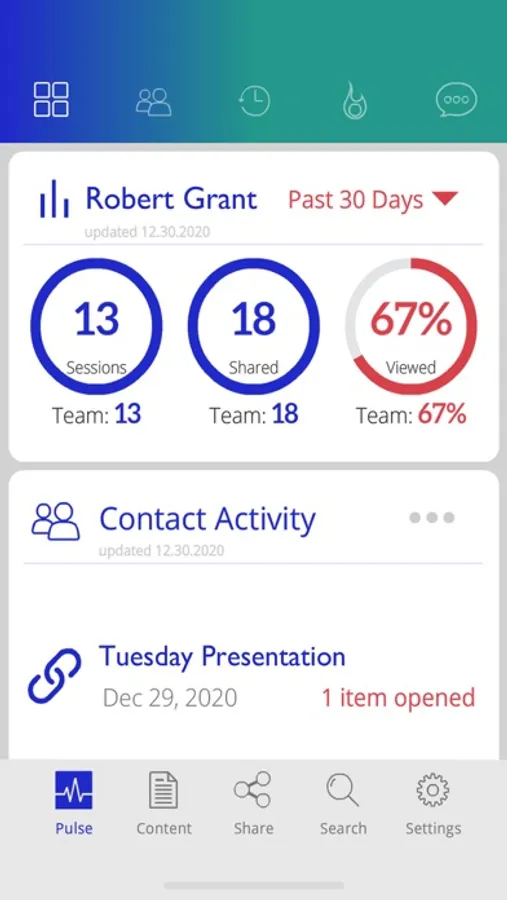 • Detailed contact activity every time you share content from our proactive Pulse Dashboard