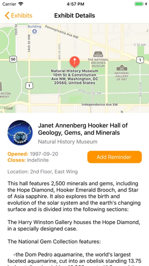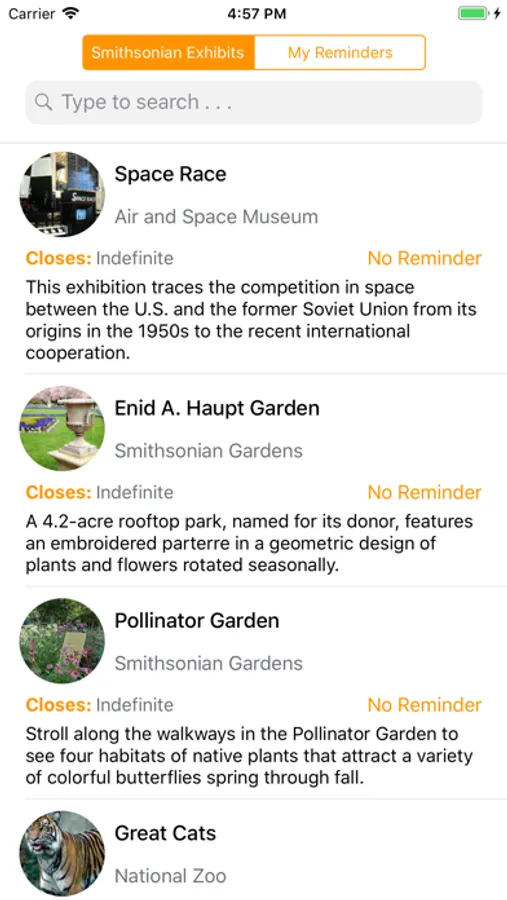 Browse the list of current exhibits, search for museum names and exhibit descriptions, and set time or location based reminders for exhibitions you want to visit. Exhibit descriptions, locations, and links to further information will ensure the information you need is right at your fingertips.