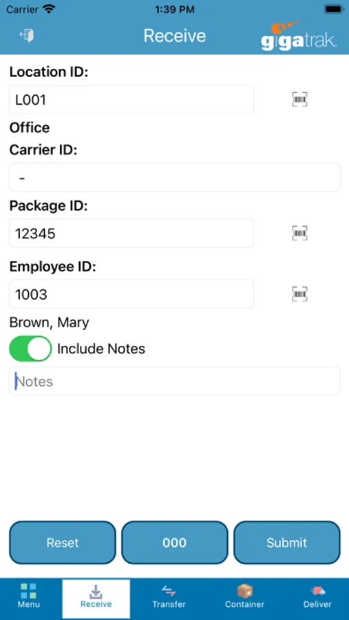 Do you need a simple solution to track the routing of registered mail and packages throughout your organization? The GigaTrak® PTS Mobile application for iOS gets the job done with minimal training and effort. Receipt, Transfer, Container, and Deliver packages all with a low-cost solution! GigaTrak® PTS Mobile is used in conjunction with the GigaTrak® PTS PC application. Each transaction is time and date stamped to ensure that reports are representative of when the actual scan was completed. Email and text notifications can be sent upon receipt and delivery allowing the receiver to stay updated on the status of their package as it reaches different access points.