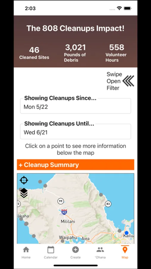 808 Cleanups is a Hawaii based 501(c)(3) nonprofit dedicated to supporting volunteers in their stewardship projects. Use this app to connect with fellow volunteers and work as a team to make the islands of Hawai'i cleaner, safer and stronger! On the CREATE screen you can Check In your Cleanup, Create a Cleanup Event, Report Something, and Request Immediate Support. The app is GPS enabled so everything can be documented precisely! The App also builds your own volunteer portfolio so you can track your hours, locations served and stewardship actions. Built-in event calendar and problem report searcher gives you GPS based driving directions! Get the big picture on island stewardship actions with the mega map. After entering your reports, click the direct links to our social media pages to share your cleanup photos and videos! Mahalo Nui Loa for your service!