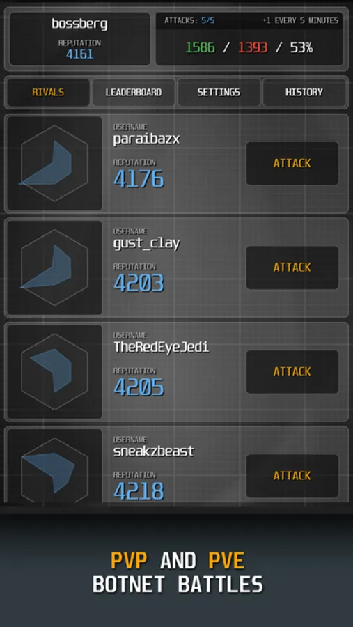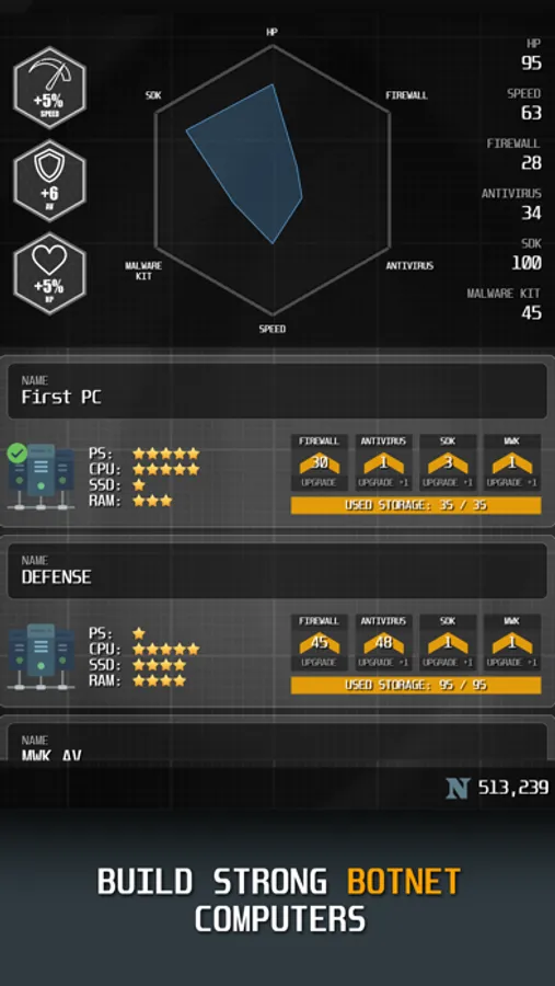 Turn your virtual pc to a Hackbot and keep upgrading it to attack stronger targets. When it comes to upgrading your pc – sky is the limit in this multiplayer hack game. Join the hacker wars with the best device possible with the strategy of your choosing: offense, defense, hybrid, and more.