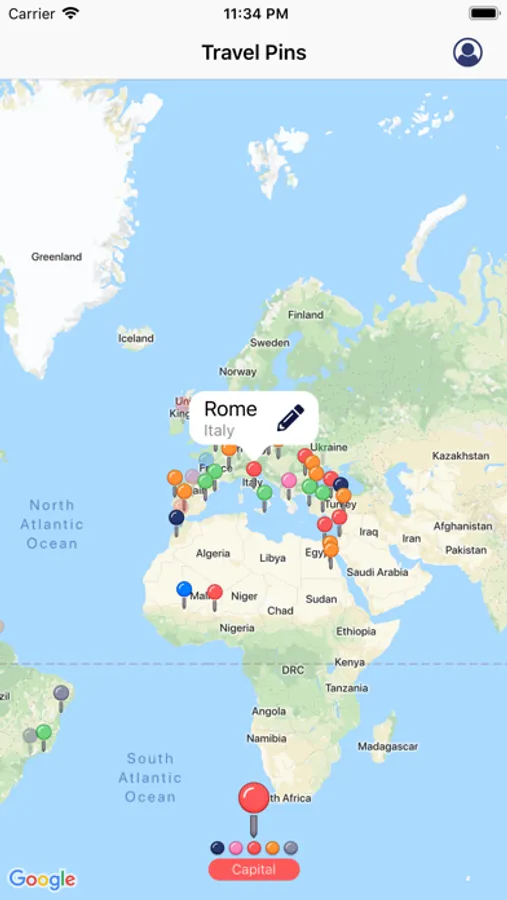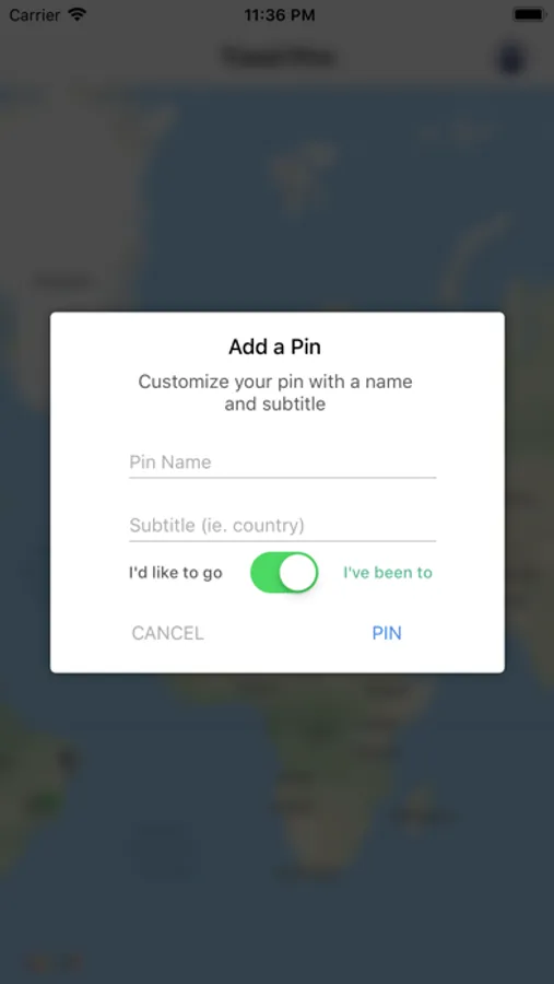 Carry your travel map in your pocket with Travel Pins. Place pins anywhere on earth by simply long pressing on the map. Customize your pins with different colors, custom names and subtitles.