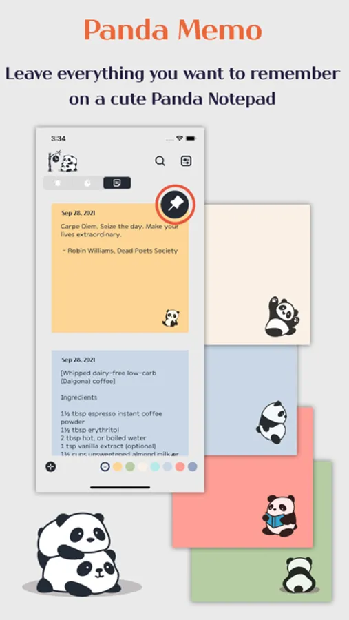 You can leave anything you want to remember, such as a recipe, a grocery shopping list, or a good phrase, on the seven-colored panda memo.