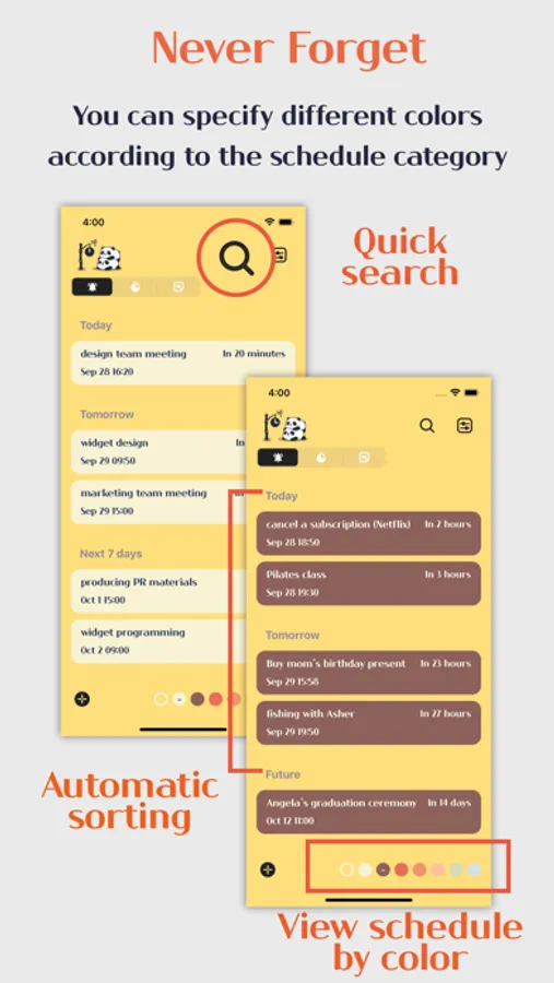 If there are many schedules registered in the reminder, you can quickly find them using keywords.