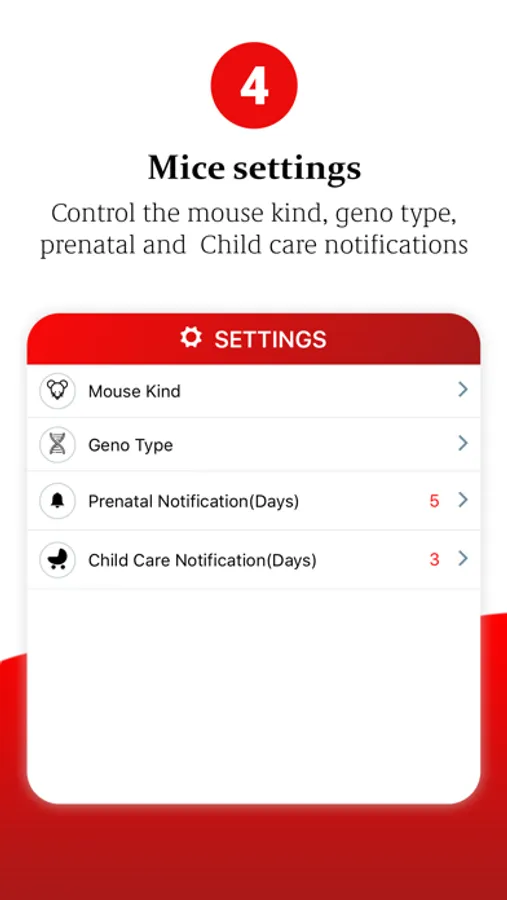 If mice status is set to pregnancy, a pop up notification will be given on the expected. date of delivery.