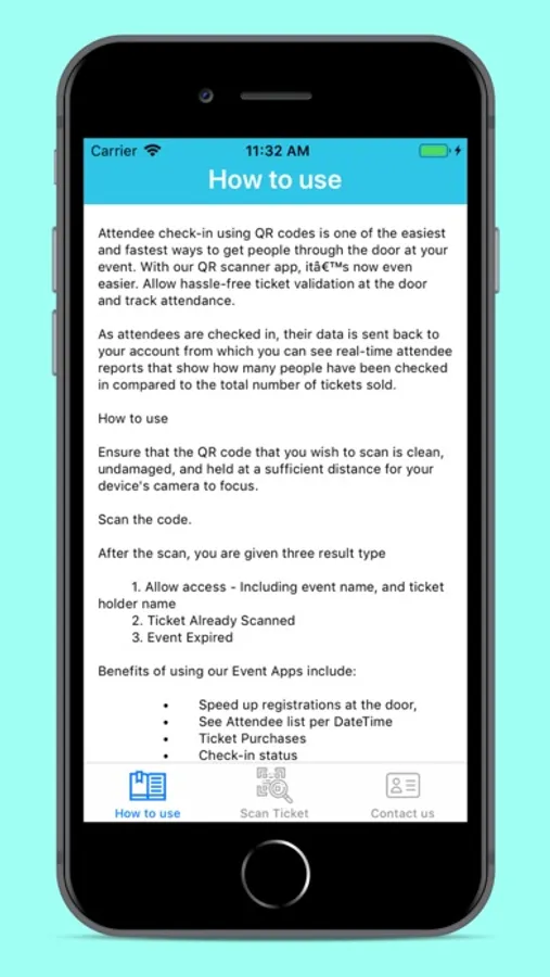 Scan the unique QR pattern you see printed on each E-ticket to securely manage attendees at the door.
