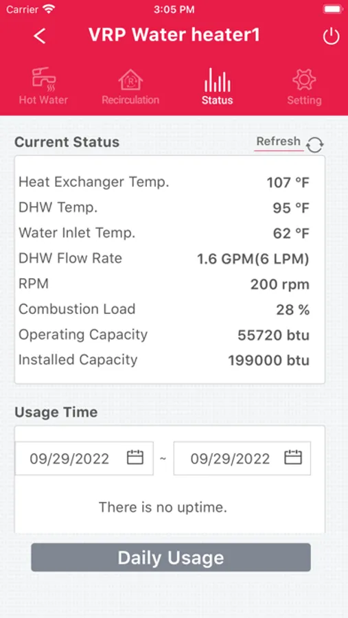 - Activate your recirculation pump while on your way home or wirelessly from any room in your house.