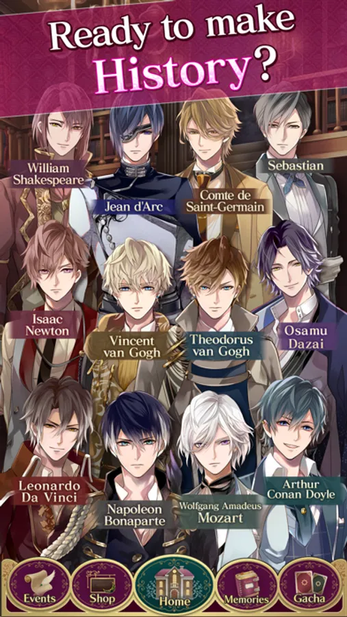 Ikemen Vampire: Temptation in the Dark is the newest addition CYBIRD's hit Ikemen Series otome dating/romance love sim games! If you enjoyed Midnight Cinderella, Ikemen Sengoku, and Ikemen Revolution, get ready for another romantic phenomenon that will keep you on the edge of your seat! Get lost in a mystic, tender and thrilling interactive otome dating novel with love interests that include none other than Mozart, Isaac Newton, and Shakespeare! Ready to make history?
