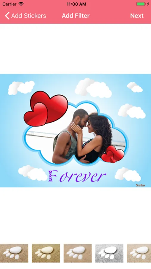 - Add photo frames with backgrounds of all kinds to your own photos.