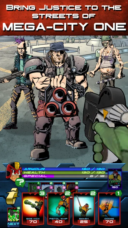 You are Judge Dredd! Build a deck of his iconic weapons and bring justice to the streets of Mega-City One as the comic pages of Judge Dredd come to life in this addictive and free-to-play collectable card battler RPG!